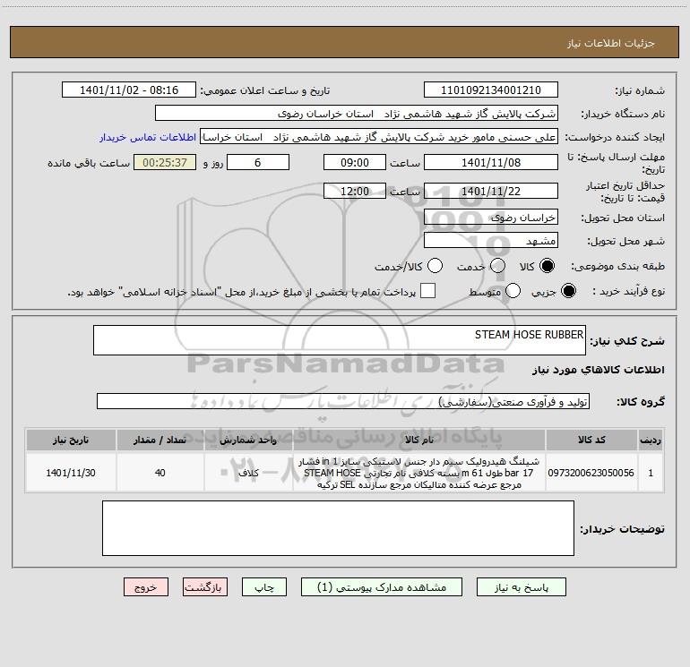 شرح کلی نیاز: STEAM HOSE RUBBER