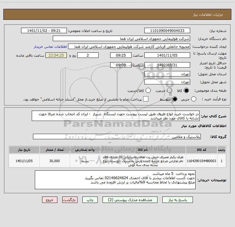 نام دستگاه خریدار:شرکت هواپیمایی جمهوری اسلامی ایران هما