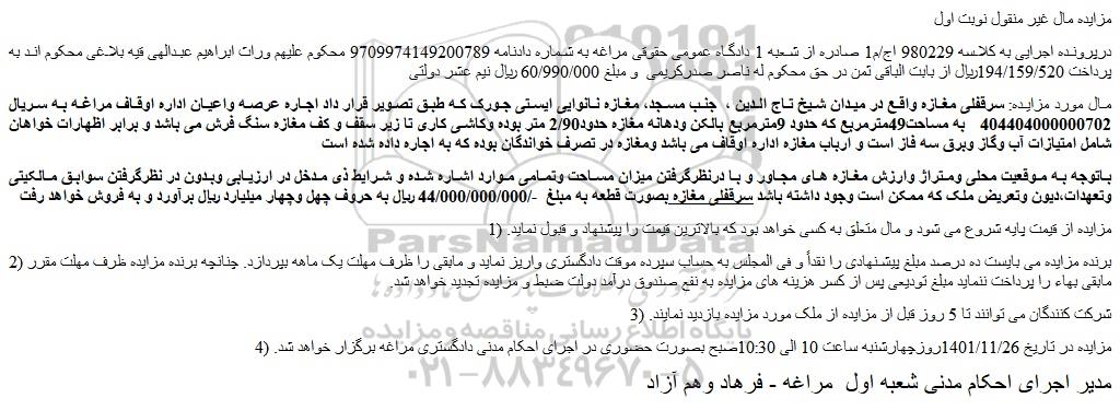 مزایده فروش سرقفلی مغازه , مزایده فروش سرقفلی مغازه