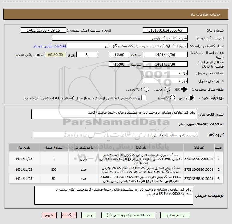 استعلام ایران کد اعلامی مشابه پرداخت 30 روز پیشنهاد مالی حتما ضمیمه گردد, استعلام ایران کد اعلامی مشابه پرداخت 30 روز پیشنهاد مالی حتما ضمیمه گردد