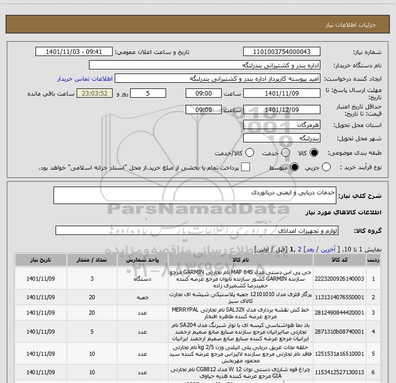 شرح کلی نیاز: خدمات دریایی و ایمنی دریانوردی