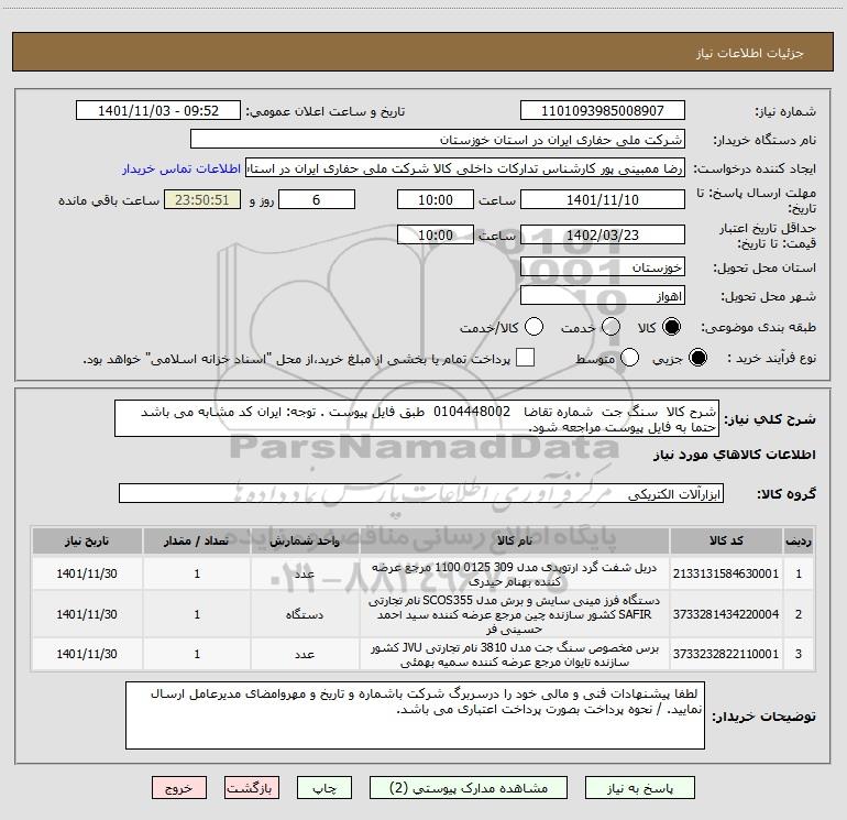 نام دستگاه خریدار:شرکت ملی حفاری ایران در استان خوزستان