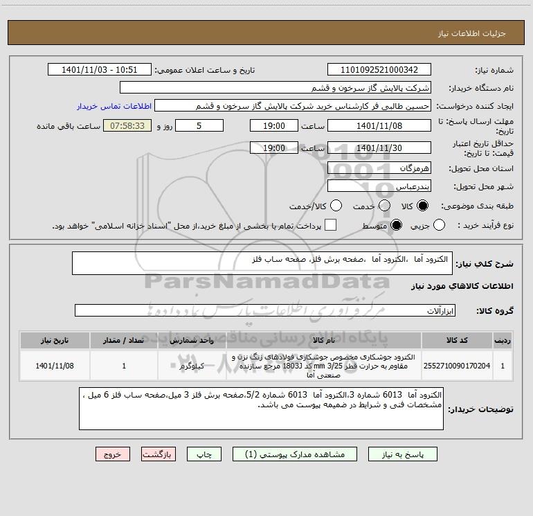 نام دستگاه خریدار:شرکت پالایش گاز سرخون و قشم