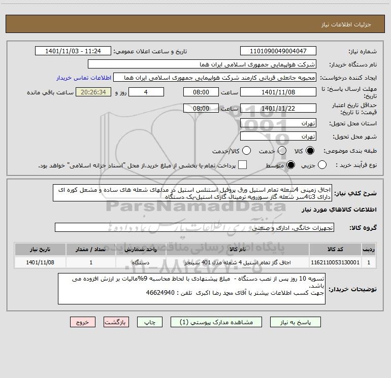 نام دستگاه خریدار:شرکت هواپیمایی جمهوری اسلامی ایران هما