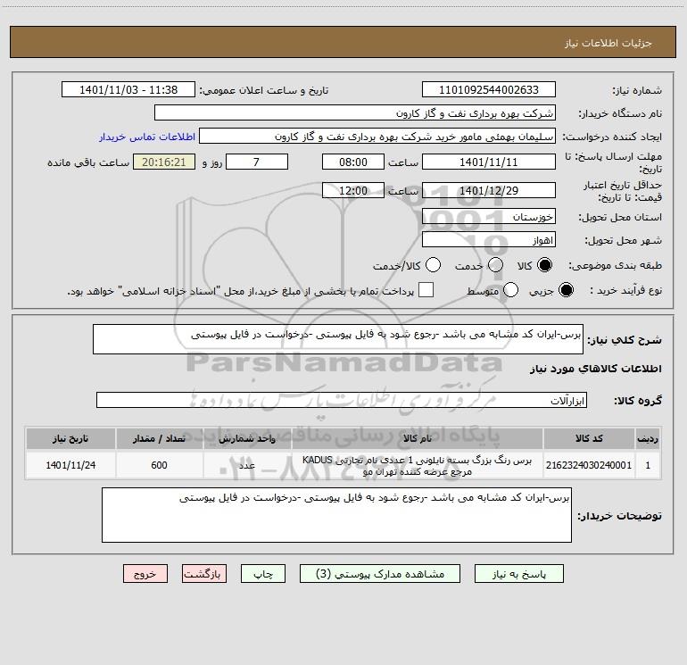 نام دستگاه خریدار:شرکت بهره برداری نفت و گاز کارون