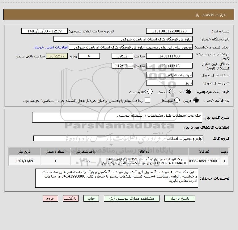شرح کلی نیاز: جک درب ومتعلقات طبق مشخصات و استعلام پیوستی