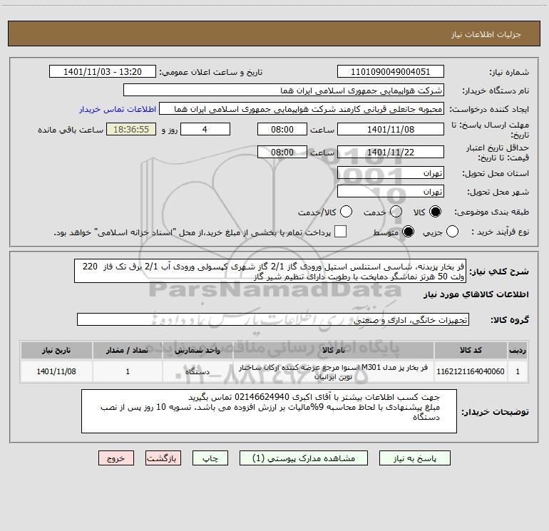 نام دستگاه خریدار:شرکت هواپیمایی جمهوری اسلامی ایران هما