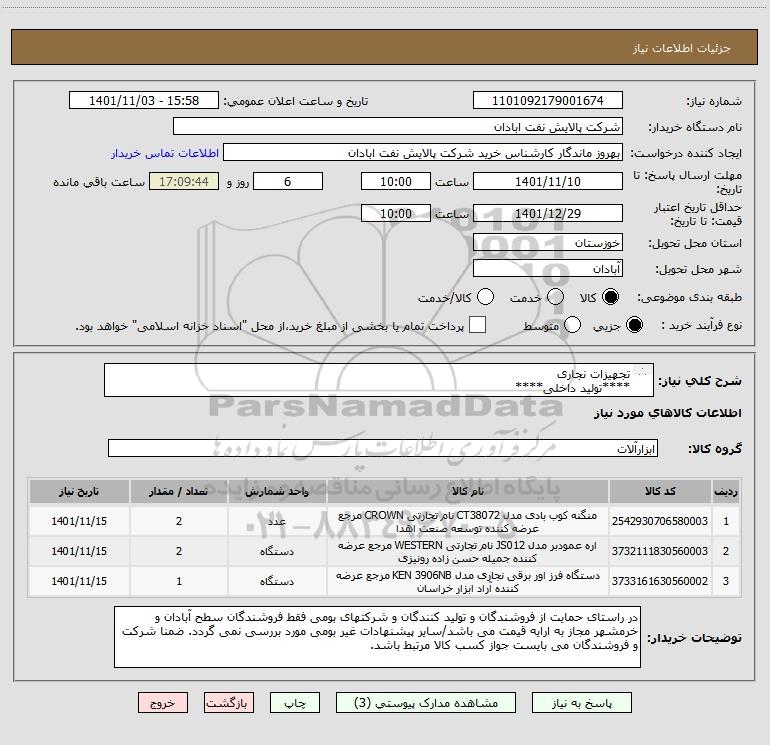 نام دستگاه خریدار:شرکت پالایش نفت ابادان