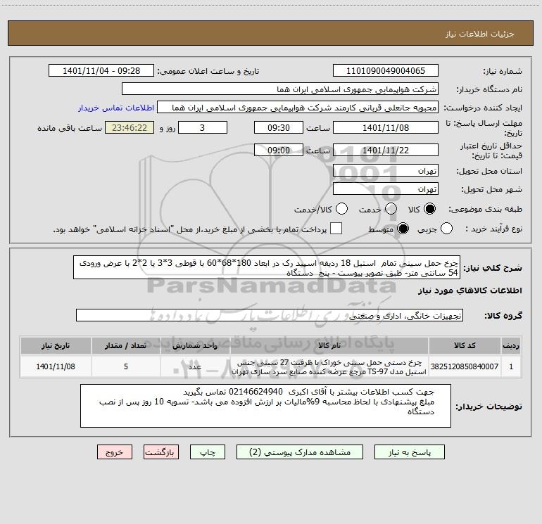 نام دستگاه خریدار:شرکت هواپیمایی جمهوری اسلامی ایران هما