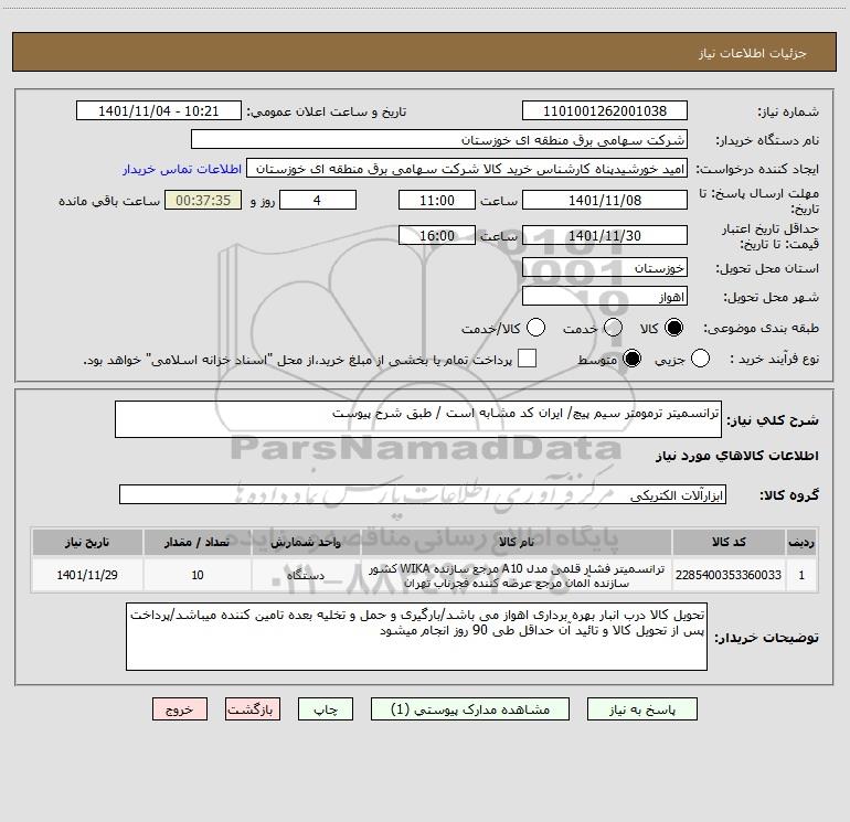 نام دستگاه خریدار:شرکت سهامی برق منطقه ای خوزستان