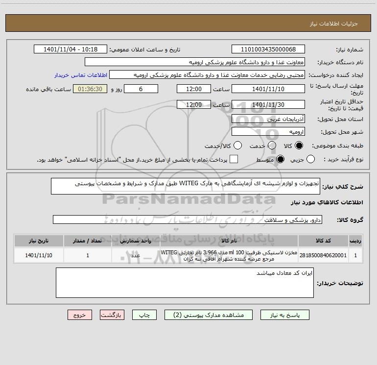 نام دستگاه خریدار:معاونت غذا و دارو دانشگاه علوم پزشکی ارومیه