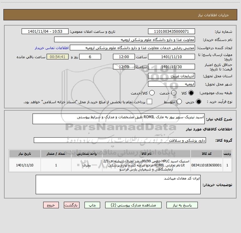 نام دستگاه خریدار:معاونت غذا و دارو دانشگاه علوم پزشکی ارومیه