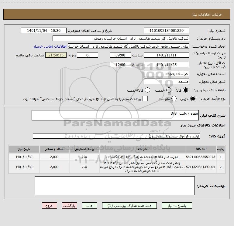 نام دستگاه خریدار:شرکت پالایش گاز شهید هاشمی نژاد استان خراسان رضوی