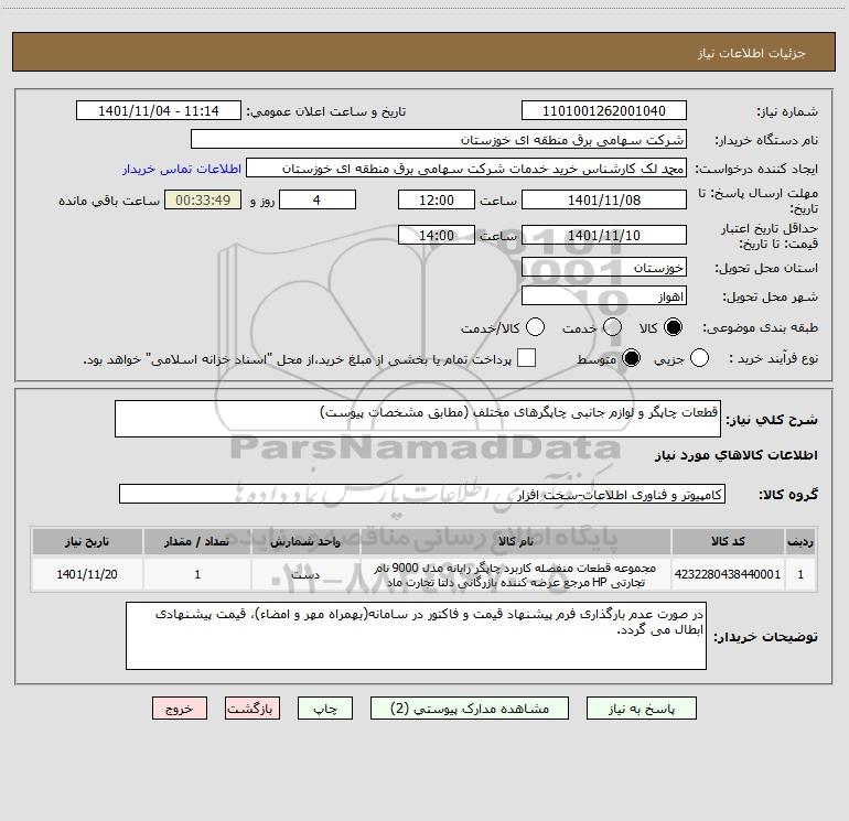 شرح کلی نیاز: قطعات چاپگر و لوازم جانبی چاپگرهای مختلف (مطابق مشخصات پیوست)