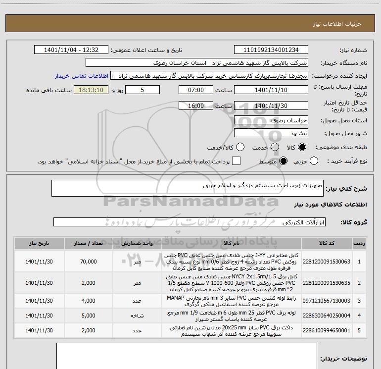 نام دستگاه خریدار:شرکت پالایش گاز شهید هاشمی نژاد استان خراسان رضوی