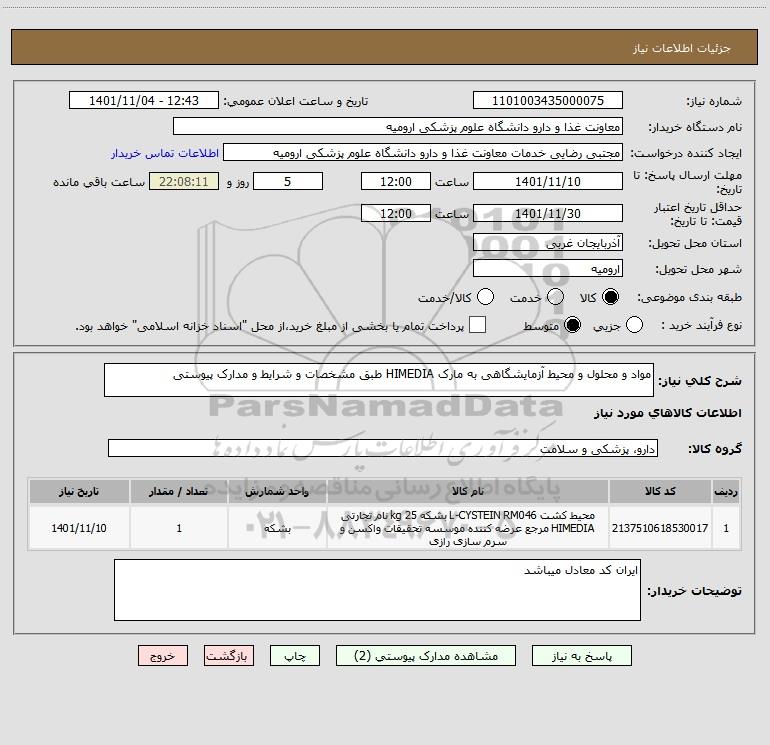 نام دستگاه خریدار:معاونت غذا و دارو دانشگاه علوم پزشکی ارومیه