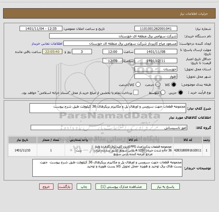 استعلام مجموعه قطعات جهت سرویس و اورهال پل و مکانیزم بریکرهای 36 کیلوولت طبق شرح پیوست, استعلام مجموعه قطعات جهت سرویس و اورهال پل و مکانیزم بریکرهای 36 کیلوولت طبق شرح پیوست