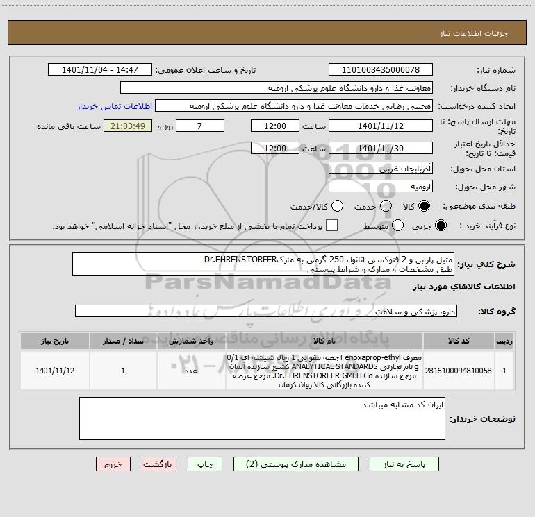 نام دستگاه خریدار:معاونت غذا و دارو دانشگاه علوم پزشکی ارومیه