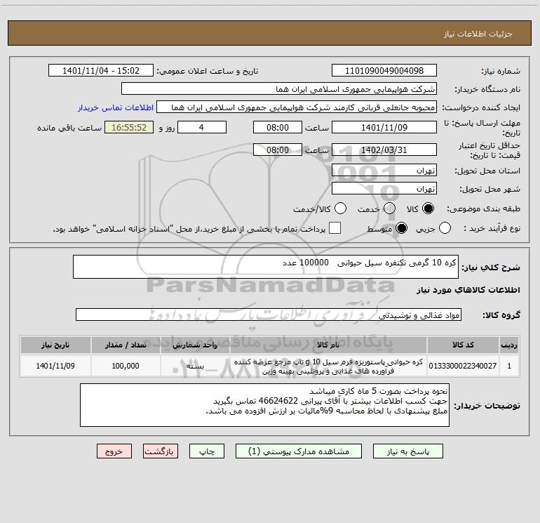 شرح کلی نیاز: کره 10 گرمی تکنفره سیل حیوانی 100000 عدد
