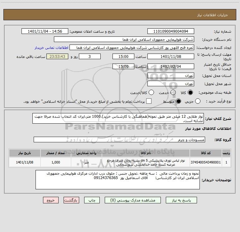 نام دستگاه خریدار:شرکت هواپیمایی جمهوری اسلامی ایران هما