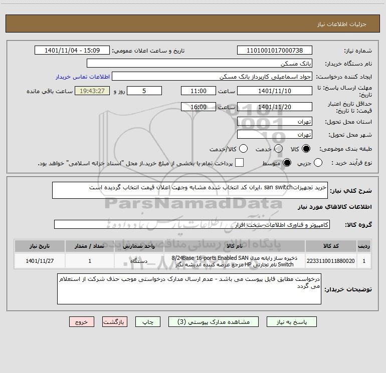 شرح کلی نیاز: خرید تجهیزاتsan switch ،ایران کد انتخاب شده مشابه وجهت اعلان قیمت انتخاب گردیده است