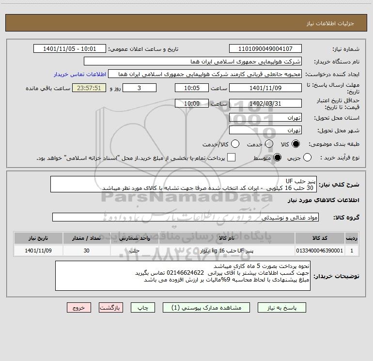 استعلام پنیر حلب UF 30 حلب 16 کیلویی - ایران کد انتخاب شده صرفا جهت تشابه با کالای مورد نظر میباشد ؟
