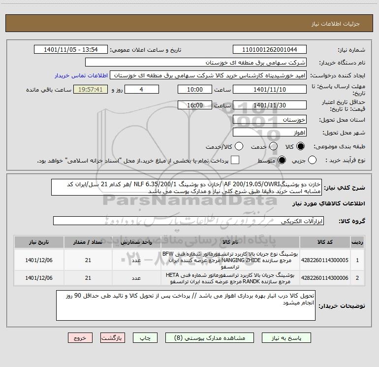نام دستگاه خریدار:شرکت سهامی برق منطقه ای خوزستان