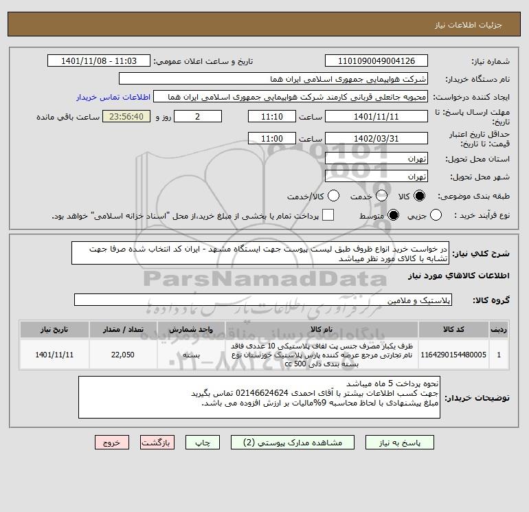 نام دستگاه خریدار:شرکت هواپیمایی جمهوری اسلامی ایران هما