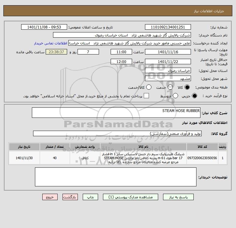 شرح کلی نیاز: STEAM HOSE RUBBER