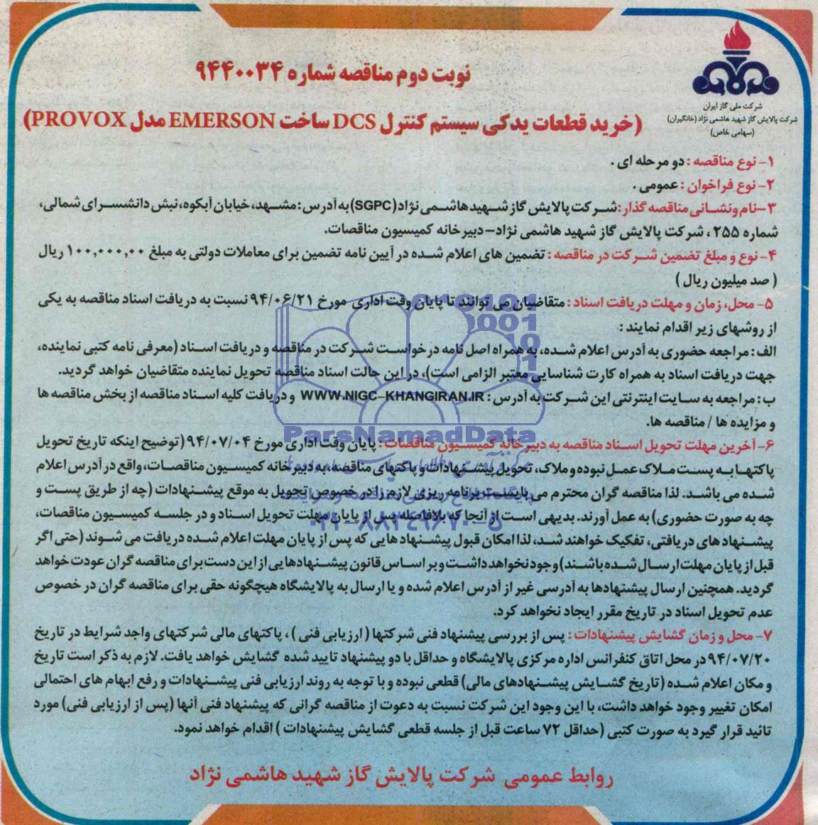 مناقصه خرید قطعات یدکی سیستم کنترل DCS از کلیه افراد متخصص و شرکتها واجد شرایط دعوت به عمل میآید در مناقصه با کد خبرگزاری پارس نماد: 544399 شرکت نمایند.