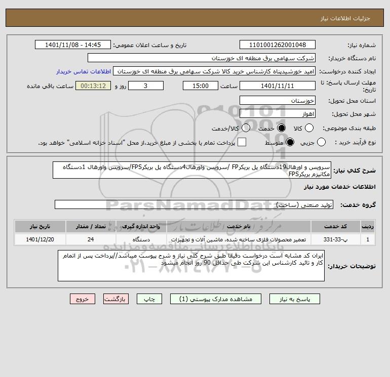 استعلام سرویس و اورهال19دستگاه پل بریکرFP /سرویس واورهال4دستگاه پل بریکرFPS/سرویس واورهال 1دستگاه مکانیزم بریکرFPS, استعلام سرویس و اورهال19دستگاه پل بریکرFP /سرویس واورهال4دستگاه پل بریکرFPS/سرویس واورهال 1دستگاه مکانیزم بریکرFPS