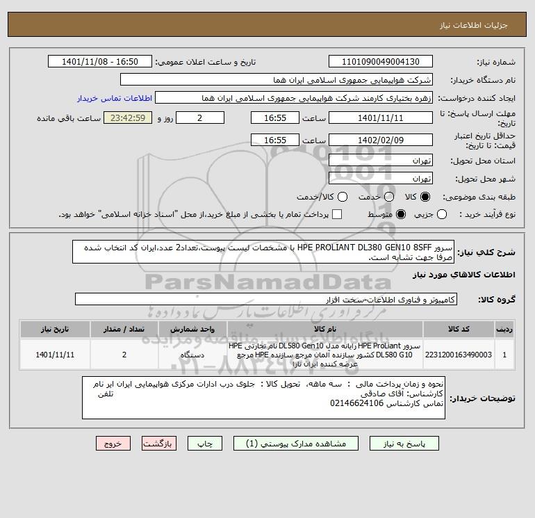 نام دستگاه خریدار:شرکت هواپیمایی جمهوری اسلامی ایران هما