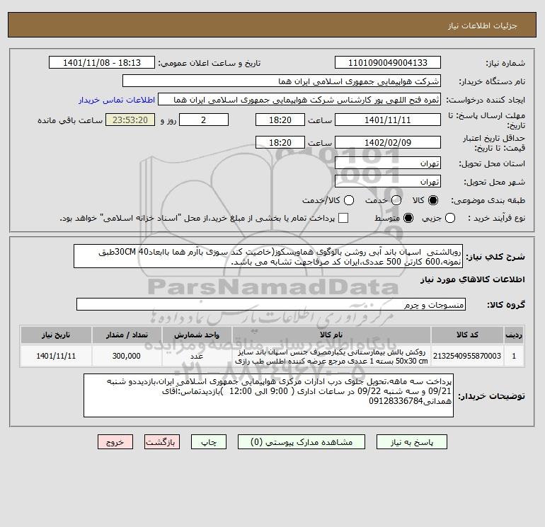 نام دستگاه خریدار:شرکت هواپیمایی جمهوری اسلامی ایران هما