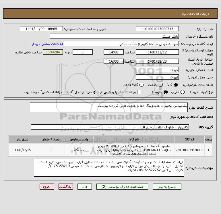 شرح کلی نیاز: پشتیبانی تجهیزات مانیتورینگ دما و رطوبت طبق قرارداد پیوست