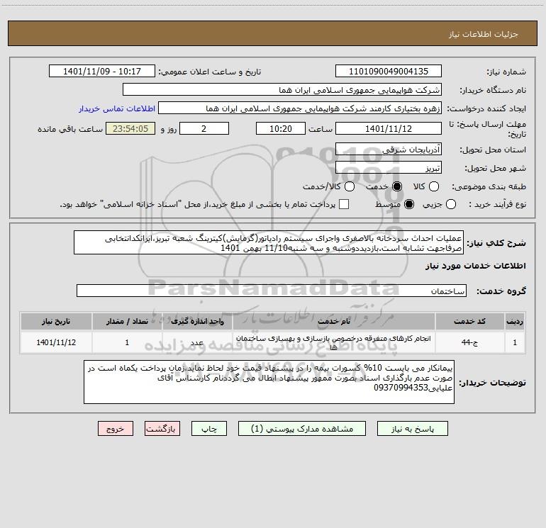 نام دستگاه خریدار:شرکت هواپیمایی جمهوری اسلامی ایران هما