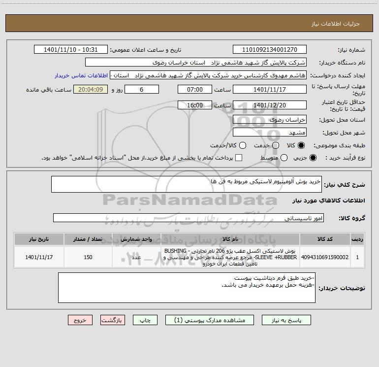 نام دستگاه خریدار:شرکت پالایش گاز شهید هاشمی نژاد استان خراسان رضوی