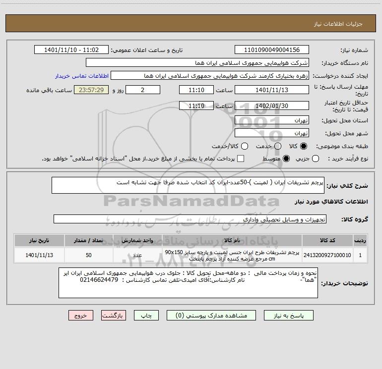 شرح کلی نیاز: پرچم تشریفات ایران ( لمینت )-50عدد-ایران کد انتخاب شده صرفا جهت تشابه است