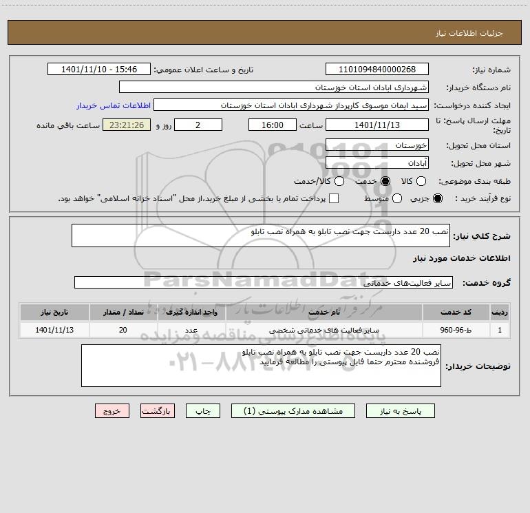 توضیحات خریدار:نصب 20 عدد داربست جهت نصب تابلو به همراه نصب تابلو