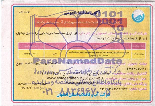 شرکت آب و فاضلاب استان اصفهان در نظر دارد از طریق مناقصه خرید ذیل را مطابق جدول زیر از فروشنده ذیصلاح انجام دهد.