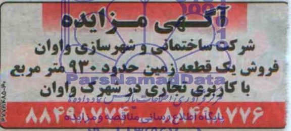 مزایده عمومی مزایده فروش یک قطعه زمین برگزار میگردد. از کلیه افراد متخصص و شرکتهای واجد شرایط دعوت به عمل میآید تا در این مزایده با کد خبرگزاری پارس نماد : 546396 شرکت نمایند تاریخ شروع مزایده : 1394/06/11 مهلت شرکت در مزایده: تا پایان روز 1394/06/21 مکان برگزاری اموال واگذاری استانهای تهران و دستهبندیهای مربوط به این حراجی املاک و زمین میباشد.