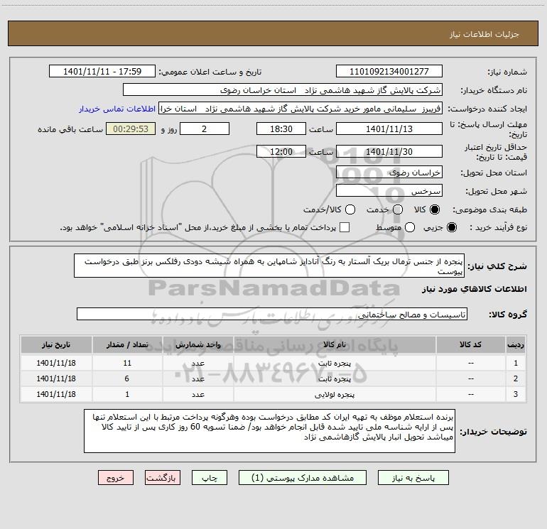 نام دستگاه خریدار:شرکت پالایش گاز شهید هاشمی نژاد استان خراسان رضوی