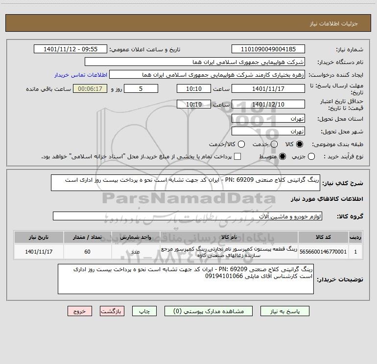 استعلام رینگ گرانیتی کلاج صنعتی PN: 69209 - ایران کد جهت تشابه است نحو ه پرداخت بیست روز اداری است ؟