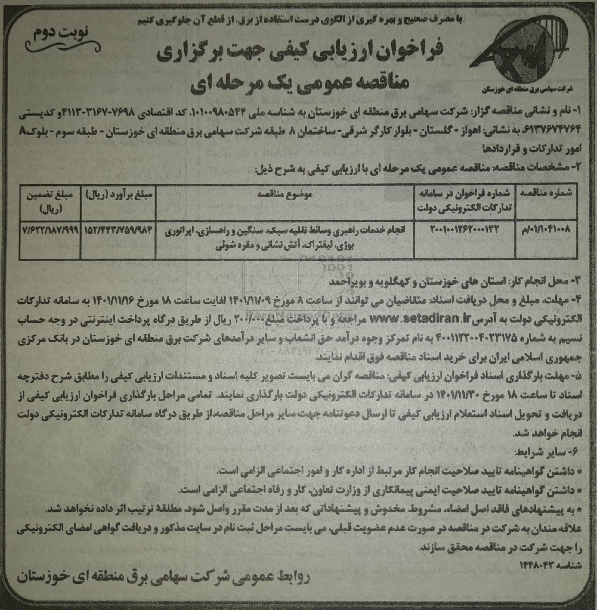 فراخوان ارزیابی کیفی جهت برگزاری مناقصه عمومی یک مرحله ای - نوبت دوم
