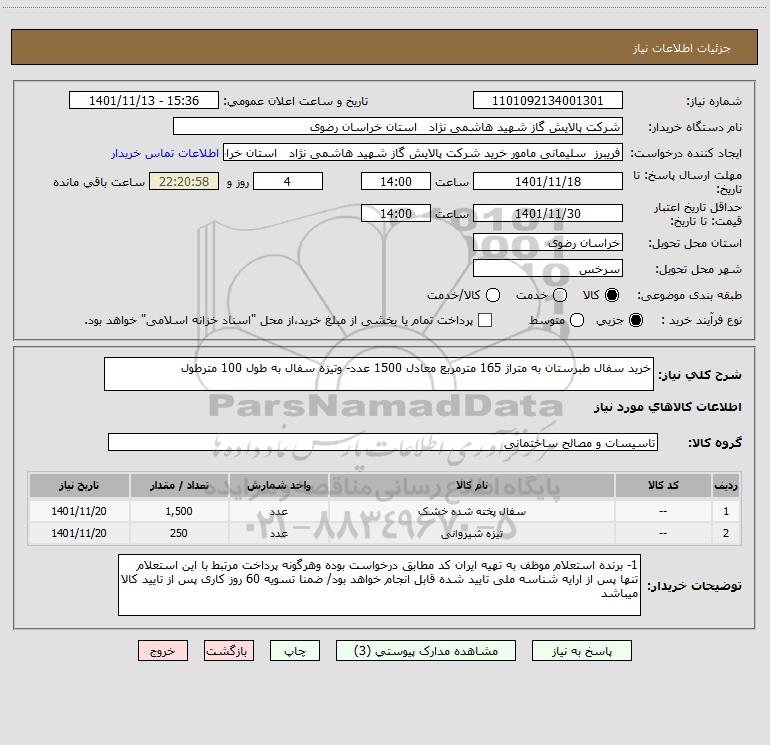نام دستگاه خریدار:شرکت پالایش گاز شهید هاشمی نژاد استان خراسان رضوی