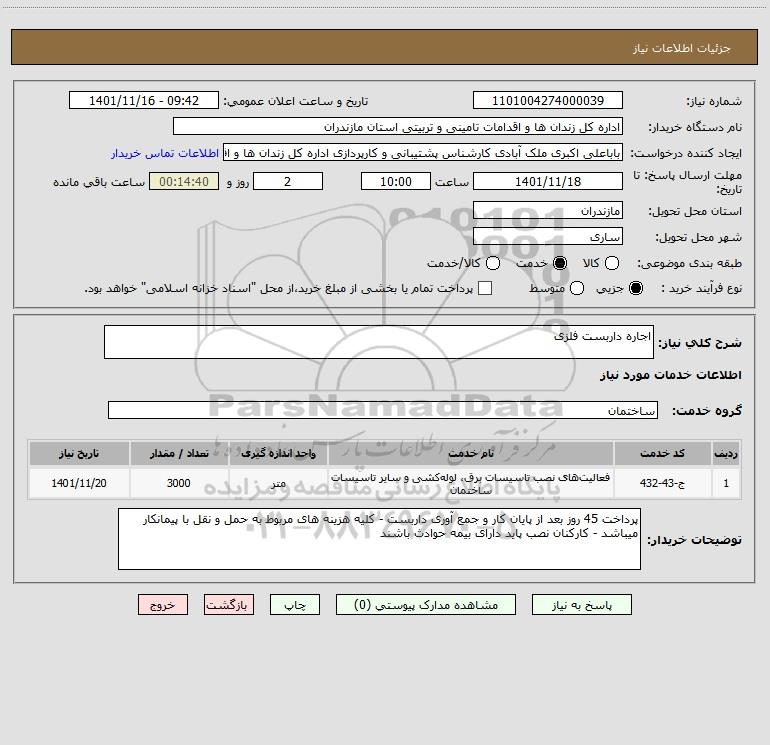 نام دستگاه خریدار:اداره کل زندان ها و اقدامات تامینی و تربیتی استان مازندران