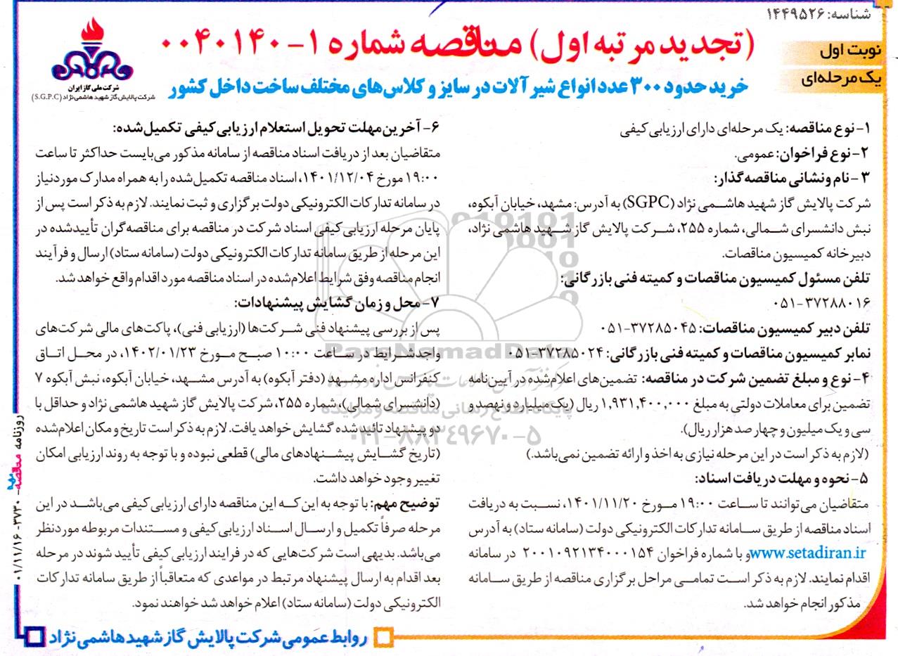 (تجدید مرتبه اول ) مناقصه شماره 1 - 0040140 ؟