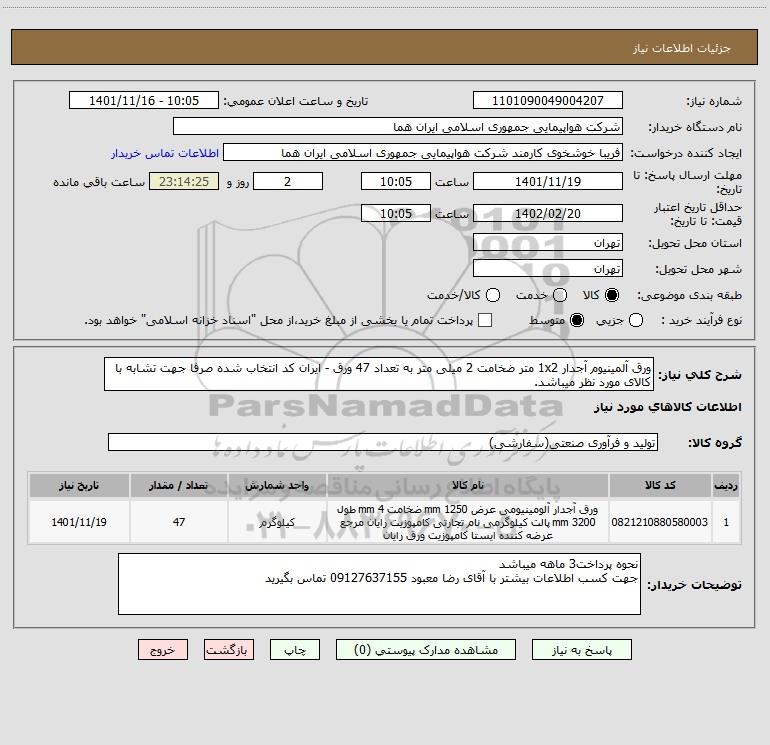 نام دستگاه خریدار:شرکت هواپیمایی جمهوری اسلامی ایران هما