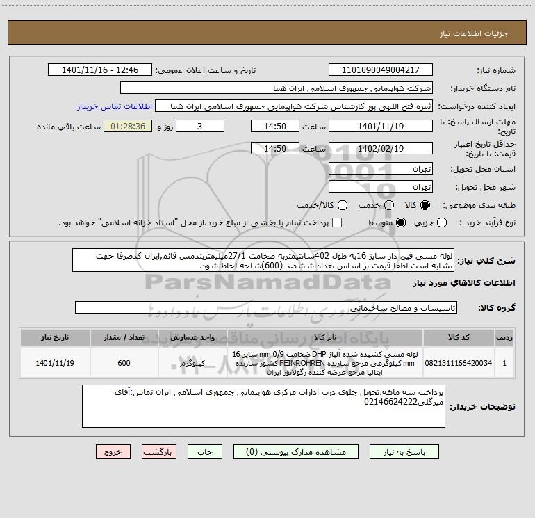 نام دستگاه خریدار:شرکت هواپیمایی جمهوری اسلامی ایران هما