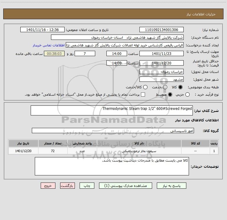 شرح کلی نیاز: Thermodynamic Steam trap 1/2" 600#Screwed Forged