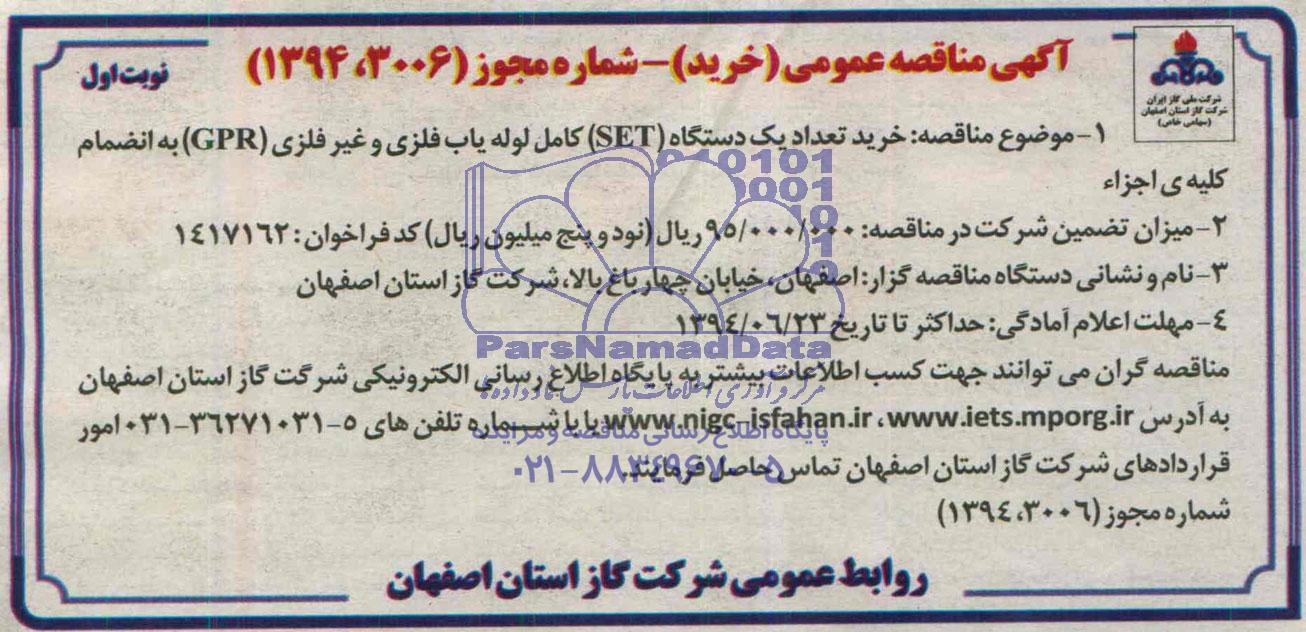 نام و نشانی مناقصه گزار اصفهان خیابان چهارباغ بالا شرکت گاز استان اصفهان